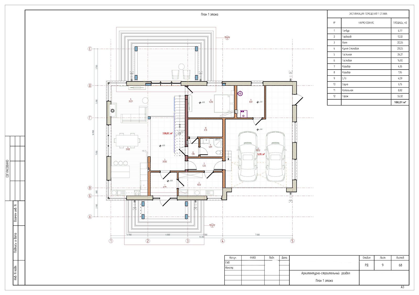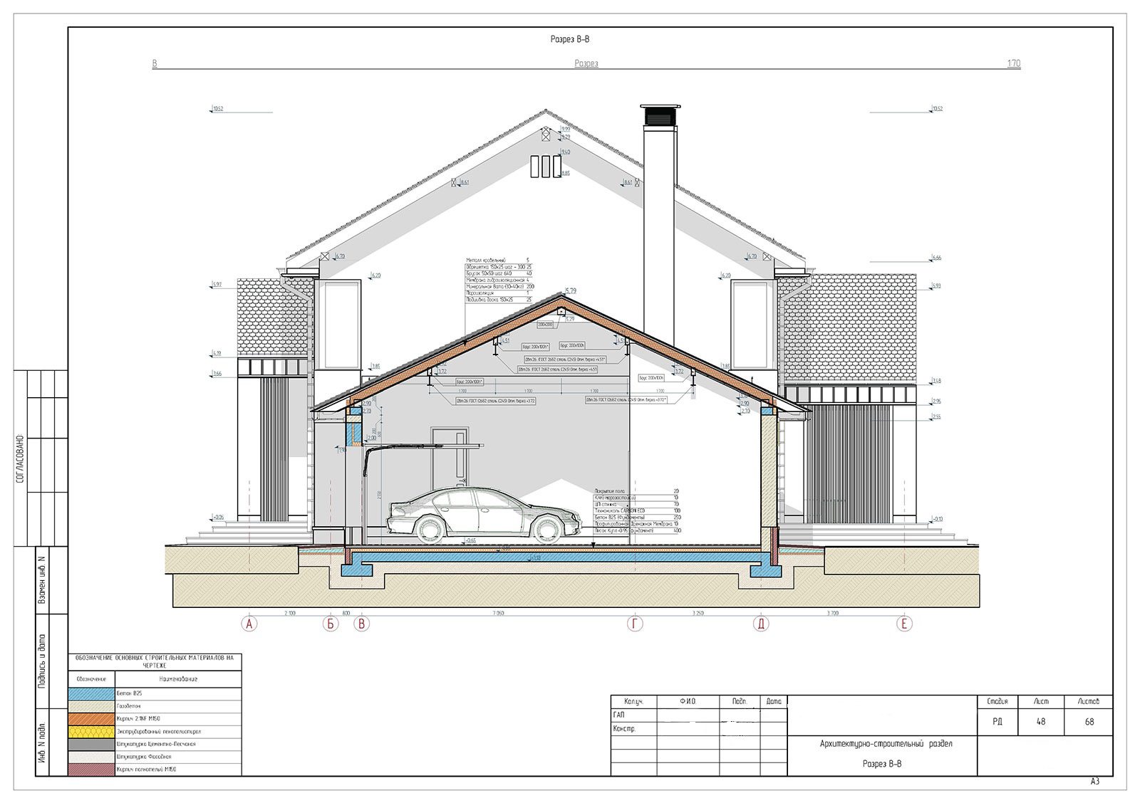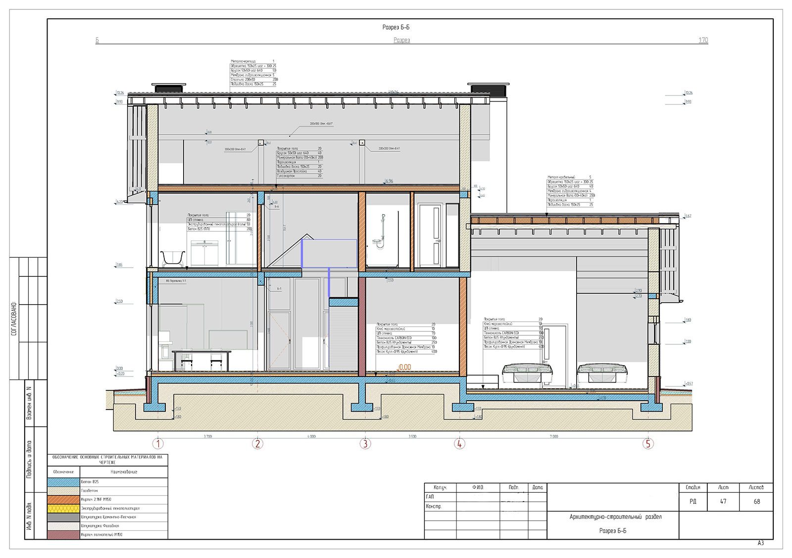 Внутренние несущие стены: газобетонный блок D500 толщиной 300 мм (ж/б дверные перемычки с U-блоком; монолитный ж/б пояс)