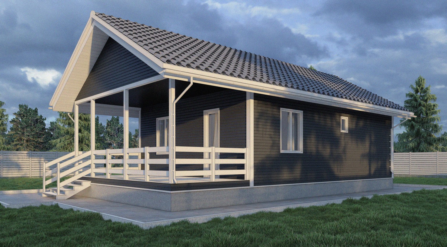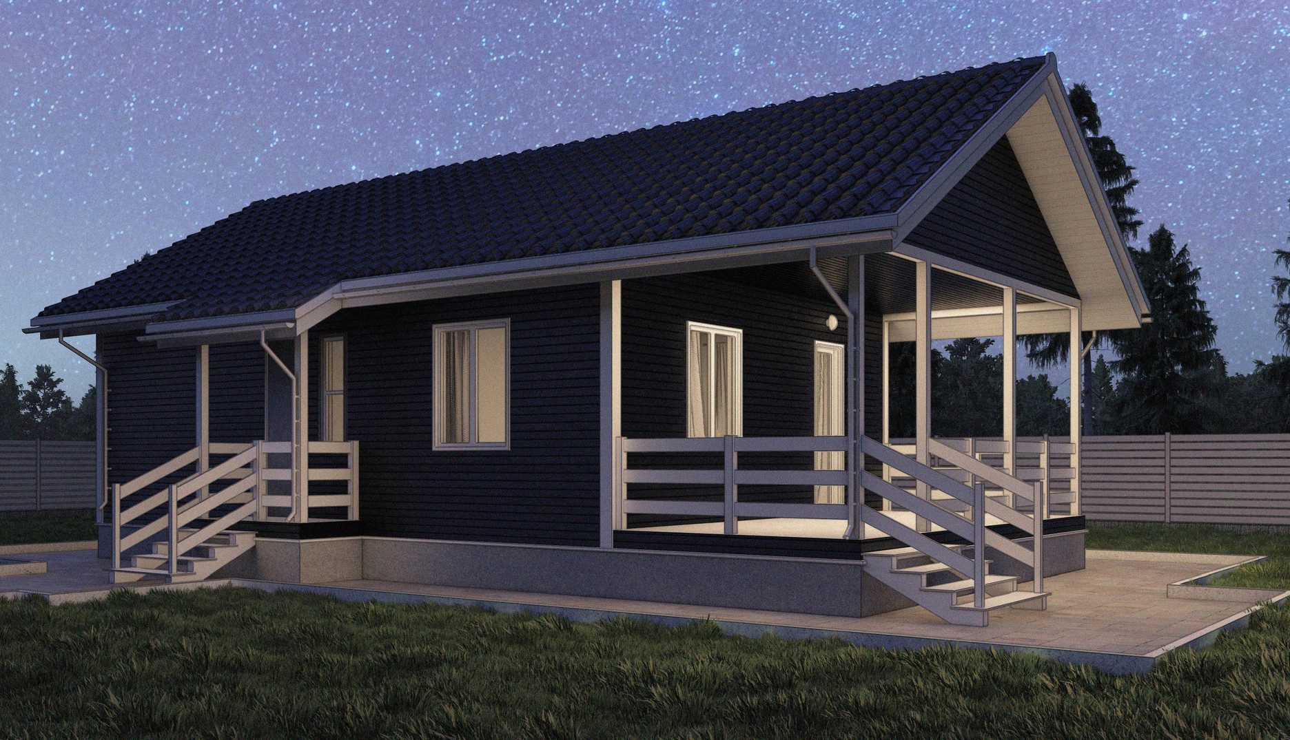 Отличительной чертой этого дома является оборудованная терраса для релаксации площадью 21 м2 – прекрасное место для наслаждения окружающей природой. Также предусмотрен дополнительный вход в дом через крыльцо площадью 2 м2.