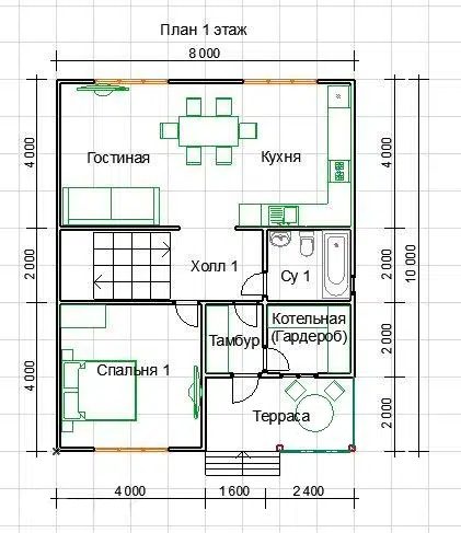 Наша тщательно продуманная планировка включает в себя четыре спальни, три санузла и просторную кухню, объединенную с гостиной. В доме также предусмотрено отдельное помещение под котельную и входной тамбур.