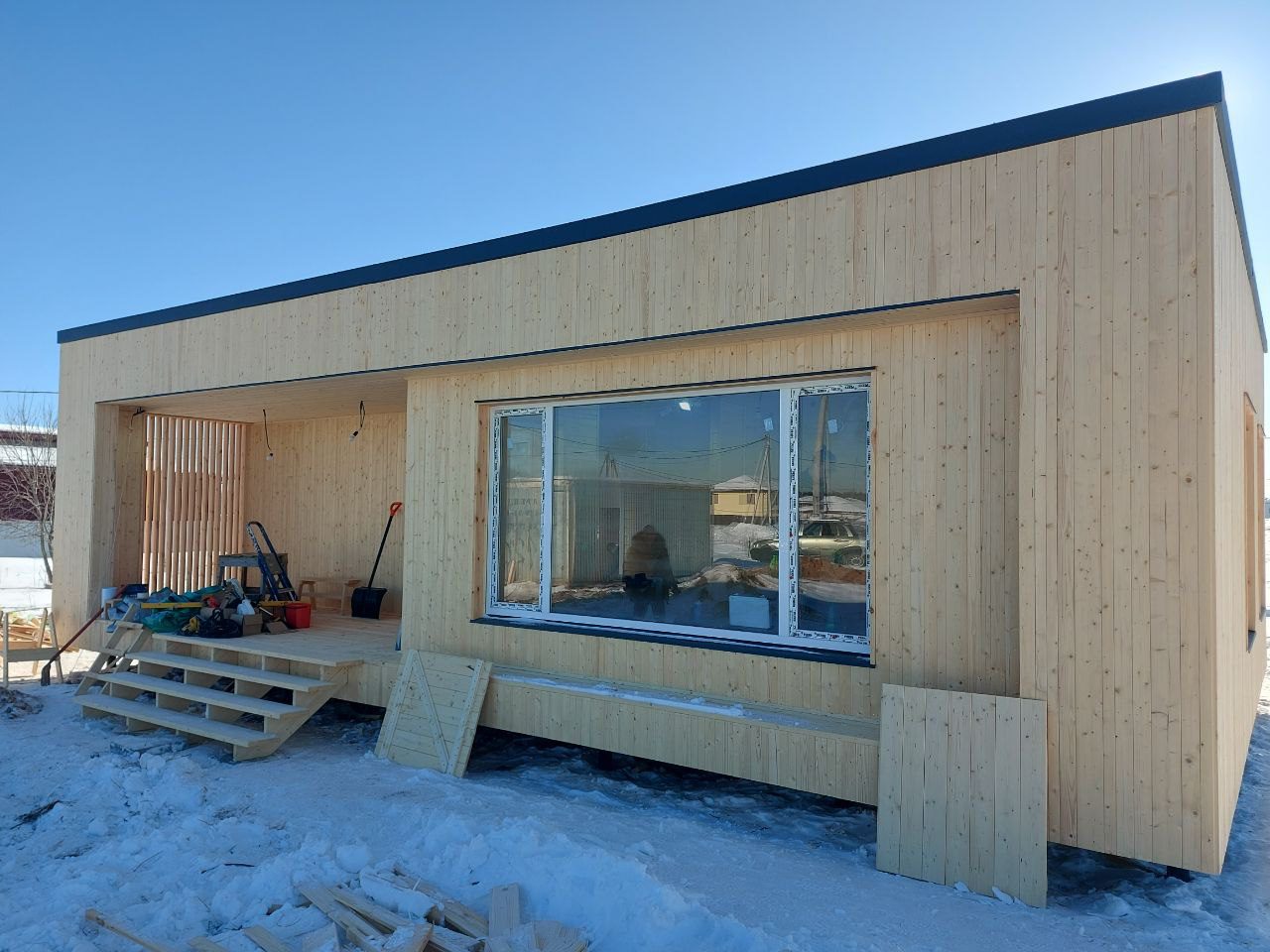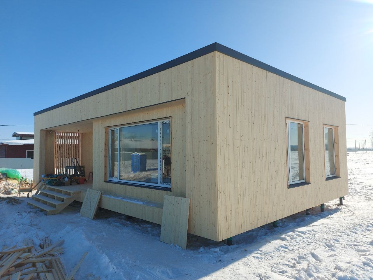 Этот каркасный одноэтажный дом, выполненный в стиле хай-тек с плоской кровлей, представляет собой воплощение современной элегантности и функциональности. Площадь в 96 квадратных метров грамотно распределена между просторными помещениями, создавая ощущение свободы и уюта. Это идеальное решение для тех, кто ценит лаконичный дизайн, энергоэффективность и близость к природе.
