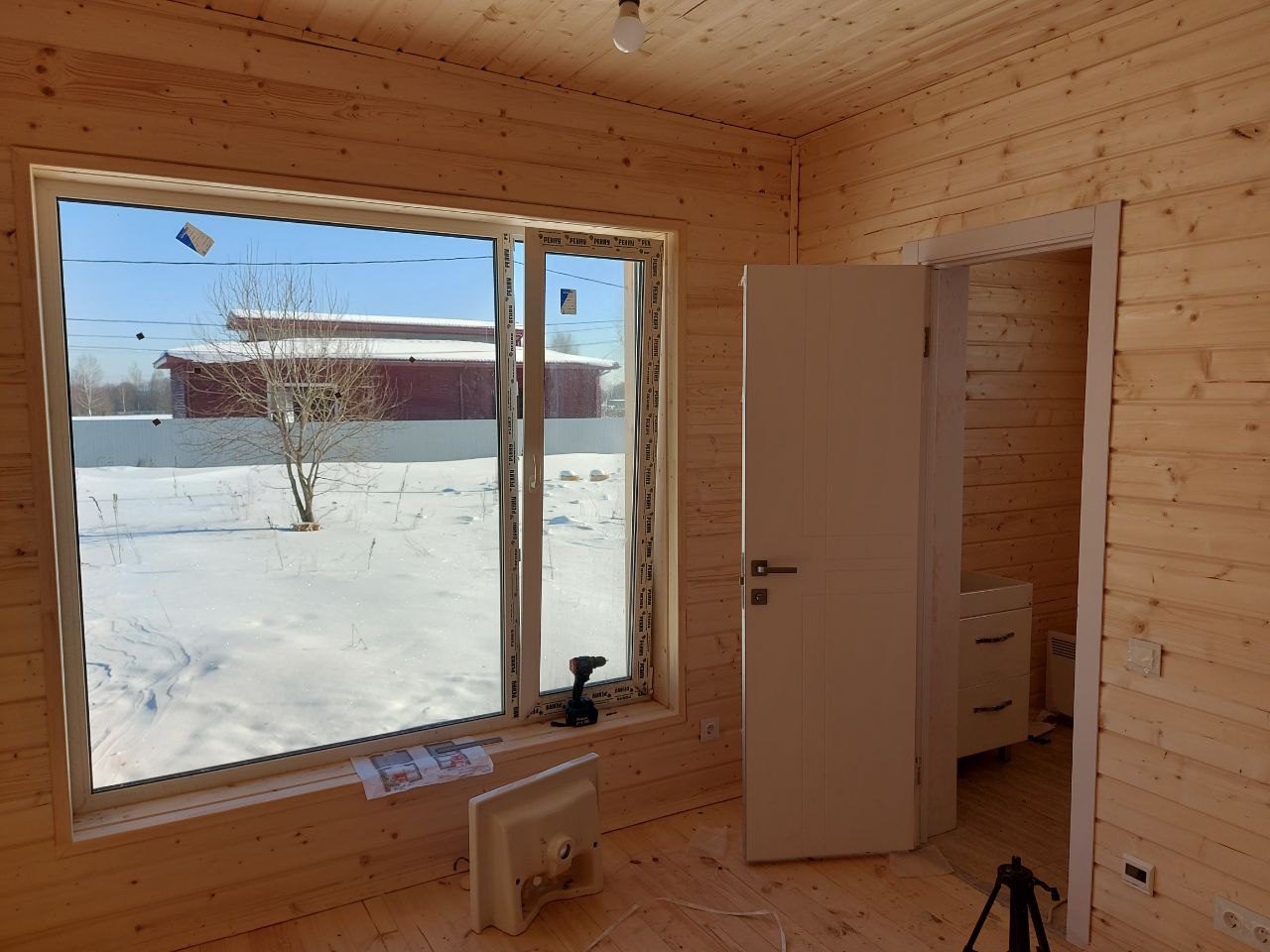 Внутреннее пространство дома тщательно спланировано для обеспечения максимального комфорта и функциональности. В доме расположены две уютные спальни, идеально подходящие для детей или гостей, а также просторная мастер-спальня с собственной ванной комнатой, создающая приватную зону для отдыха и релаксации. Сердцем дома является просторная кухня-гостиная, где семья может собираться вместе, проводить время с друзьями или просто наслаждаться тихим вечером у камина. Два санузла с душевыми кабинами обеспечивают комфорт и удобство для всех членов семьи и гостей.