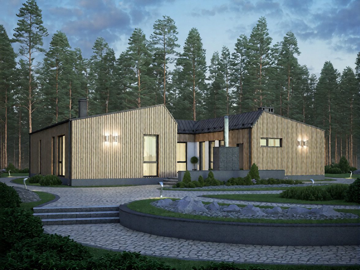 Представляем вашему вниманию проект одноэтажного каркасного дома, выполненного в элегантном и прогрессивном стиле Хай-тек. Его П-образная конфигурация не только придает строению визуальную привлекательность, но и позволяет оптимально организовать внутреннее пространство, создавая уютную и функциональную атмосферу для всей семьи.