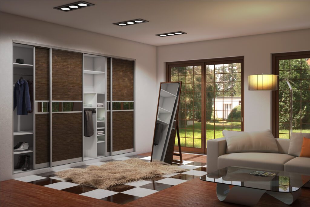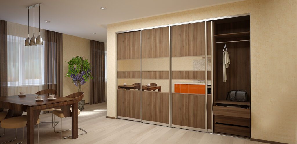 Часто в результате переустройства квартиры возникают укромные уголки, идеально подходящие для организации гардеробной или встроенного шкафа. Вопрос дополнительного хранения также важен для жилищ, изначально не имеющих кладовых. Подобные углубления могут образоваться между несущими стенами или быть сознательно созданы с помощью перегородки. Наиболее удачным считается расположение будущего шкафа вдали от оконных проемов, где он не будет привлекать излишнего внимания.